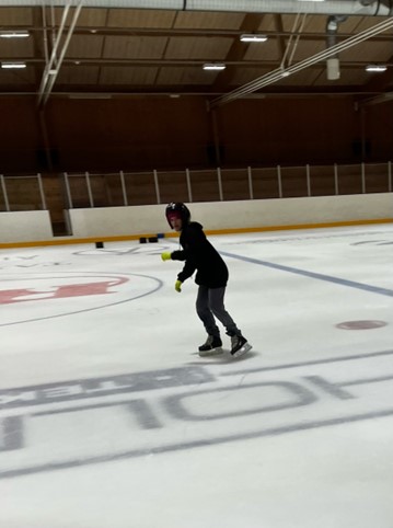 - Vi åkte först till ishallen och där lånade vi skridskor och utrustning för att skrinna. Vi åkte ut på isen och åkte. Först var det lite svårt så då fick de som inte var så vana låna en ställning. Vi åkte men sedan tog vi bort ställningen och så övade vi att balansera lite, det var nästan som att lära sig gå. Efter skrinningen åkte vi till paraidrott och där skulle man göra olika idrotter som alla skulle vara med på även om de hade någon funktionsvariation. Vi skulle till exempel spela boule medan vi blundade och efter det skulle vi åka i rullstol runt olika banor och till sist skulle vi blåsa i ett slags smalt rör för att skjuta iväg olika små pilar mot en tavla.